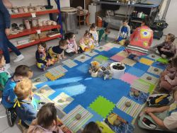 ...Dzieci z grupy IV podczas warsztatów ceramicznych w Gleba.Studio. Grupa własnoręcznie wykonała i pomalowała miseczki z gliny. Wytwory pracy zostaną wypalone w specjalnym piecu i za kilka tygodni będą gotowe do odebrania i zabrania do domu.