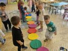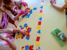 Podczas zajęć przedszkolaki tworzyły kolorowe kompozycje, układając rytmy i powtarzające się sekwencje z różnych kształtów, barw oraz elementów plastycznych. Dzięki temu ćwiczyły spostrzegawczość, umiejętność dostrzegania regularności oraz logiczne myślenie.