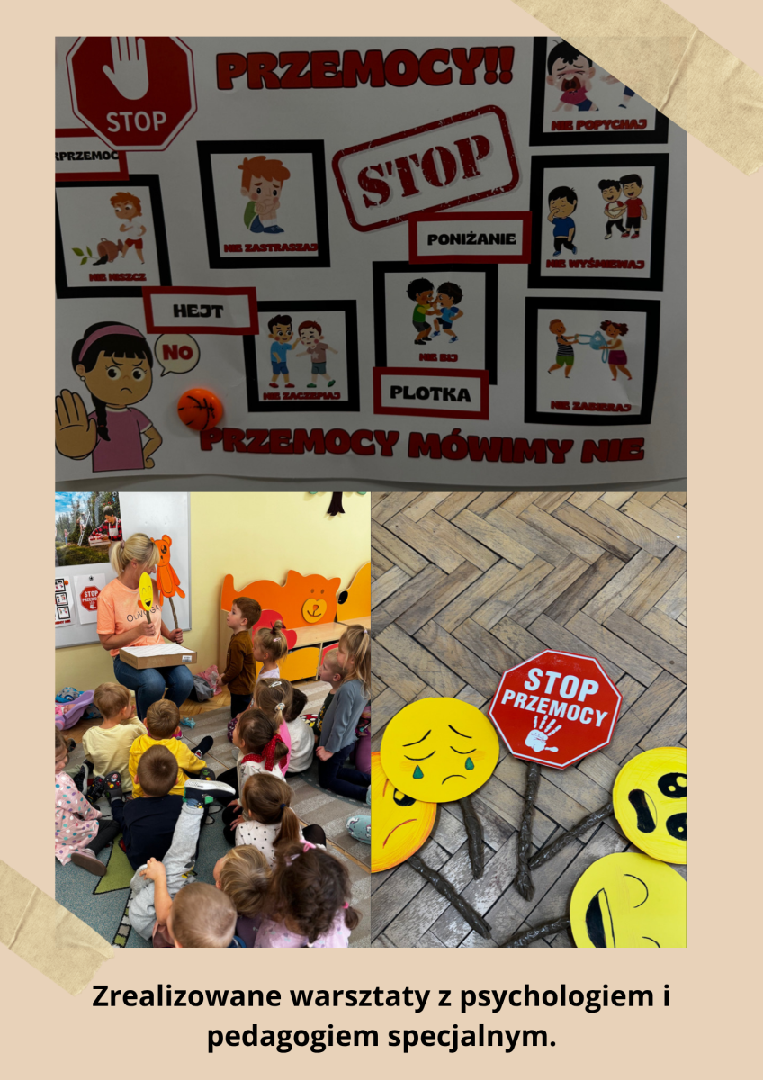 W dniach 29.09.- 3.10.2025r. W naszej placówce zostały przeprowadzone warsztaty ze specjalistami. Mające na celu edukację w zakresie przeciwdziałania przemocy rówieśniczej i naukę skutecznych metod samoobrony w momencie wystąpienia przemocy ze strony innych. Ważnym gruntem pod profilaktykę przeciwdziałania przemocy, były warsztaty budowania pozytywnych relacji między rówieśnikami, które stanowią solidny element przeciwdziałający występowaniu przemocy między dziećmi.